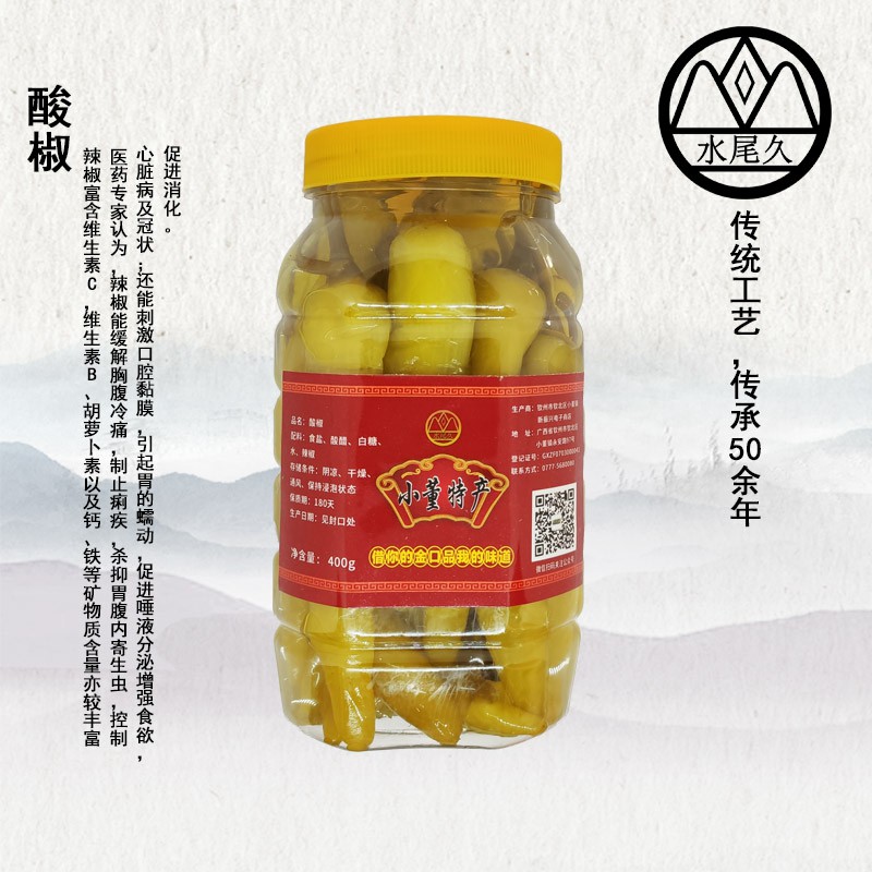 • 【自产】钦州小董特产腌渍菜酸野酸辣椒自产直营 瓶装400g、袋装500g
